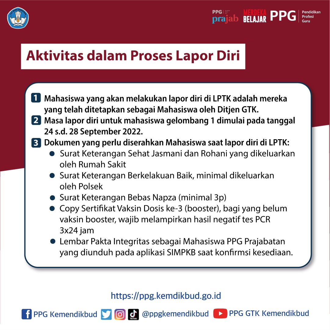 Adapun berkas yang perlu dibawa pada saat lapor diri adalah: